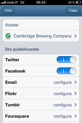 A questo punto condividete quanto realizzato: date un titolo alla vostra foto e geotaggatene la posizione (grazie all’integrazione con Foursquare le venues vengono selezionate tra quelle fornite direttamente dalla nota piattaforma).